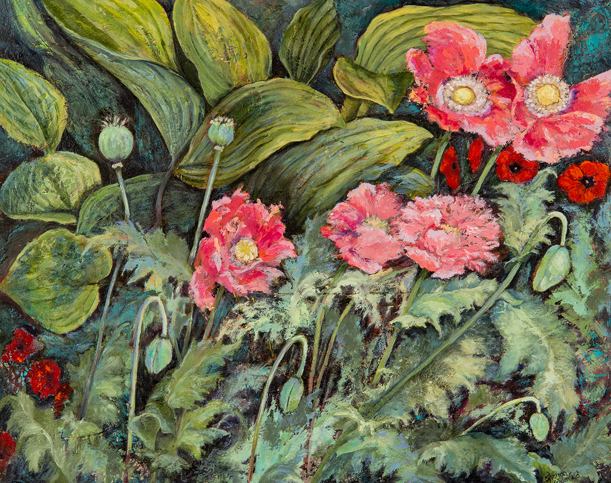 The art community in Saskatoon is interconnected in a variety of ways. As artists we tend to belong to some of the same organizations, see each other at shows, exhibitions, workshops and classes. My inner circle of art friends from Artists’ Workshop is a hands-on group, that make art together weekly from September to April at Grace West Minster Church. In the summer, we paint together in each other’s gardens. On summer weekends, I join with painters from Hues Art Supply’s Plein Air group. This group meets in various locations around the city and anyone interested is welcomed. I value the new friends that these groups and organizations have brought into my life. We follow each other’s work on social media, share ideas and information about favourite supplies and tools. The actual making of art is usually a solitary activity, so these social connections with other creatives are very important. My art practise has been enriched and I have grown as an artist because of these connections but the real bonus is all of the new friends that I have made.