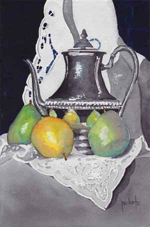 Under the tutelage of realist watercolorist, Laurin McCracken, I attempted a still life scene so detailed and complicated that I would have walked right by it in the past. I’m still not sure I’m willing to work in the degree of detail required to create these kinds of paintings, but I discovered I could do it if I wanted to.