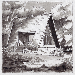 I’m a colorist at heart, so it was an interesting challenge to explore values using only black ink and washes in shades of gray in an online session with Heather Souliere. I find that even though it is lacking in color, the value changes really move my eye around the sketch.