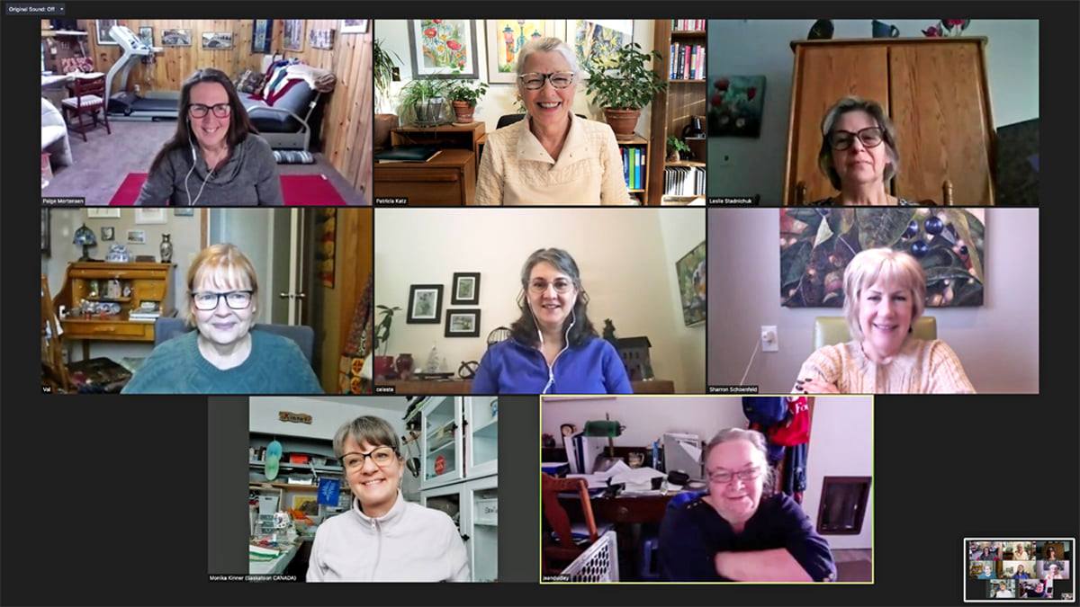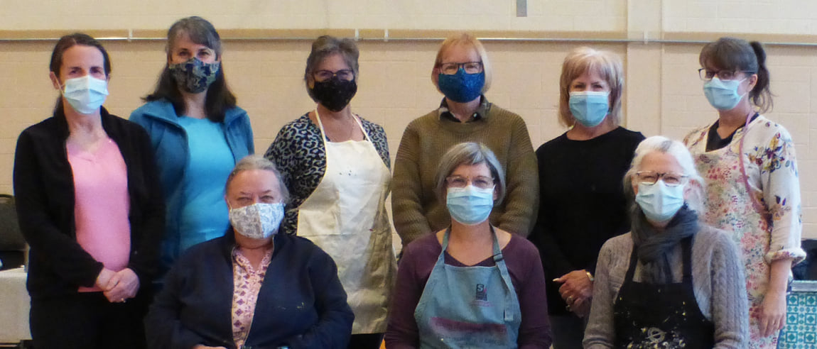 Being part of a group has practical advantages as well. When it’s time to organize our annual show, we divide up the many tasks involved, which lightens the load for all. We also support each other to find other ways to show our work, whether that means delivering artwork to shows in other cities or encouraging a newer artist to mount her first solo exhibition. Throughout the year, we benefit from each member’s unique skills and interests. For example, Sharron is our social media guru, Pat and Kathryn love to write, Paige’s bookkeeping skills keep us on track, and every month we celebrate birthdays with Celeste’s beautiful and delicious home-baked treats.