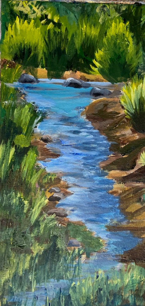 At show time, it’s hard to remember that I’m in it for the process. I do love painting outside (En Plein Air). Living in Saskatchewan isn’t a great choice for those of us committed to painting outside. And then there is the heat waves we’ve been experiencing, and I want to be in the air conditioning rather than sitting outdoors.