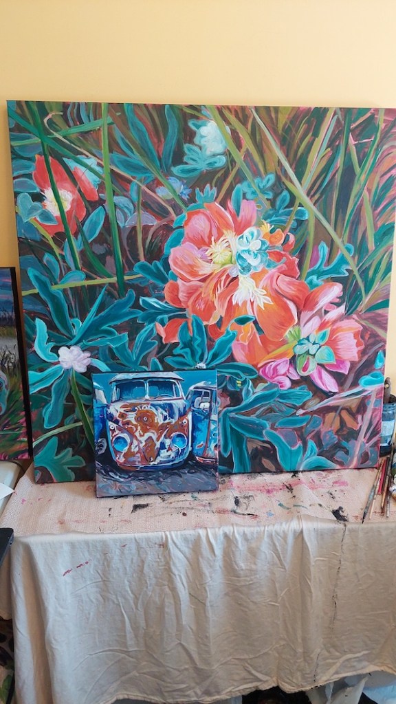 I am new to the Artists’ Workshop this year, and greatly appreciate the motivation the group provides: I need to show up every Monday and make something! Conversations about process are so welcome, as are the occasional tip – make the door a lighter green, but not all over (thanks, Kathleen).