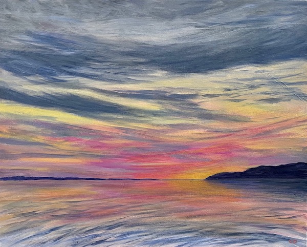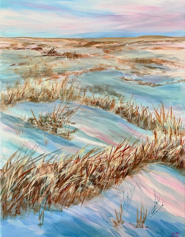 In my artwork my goal is to depict the prairie landscape with light and colour. I am so fortunate to live in a place where we experience four seasons, spacious skies filled with changing shapes, colours and moods, lands populated with crops, lakes, sloughs, forests, valleys, and long dirt roads that seemingly go on forever. I paint these images to bring joy, feelings of belonging, and to encourage people to appreciate the freedom and beauty around us.