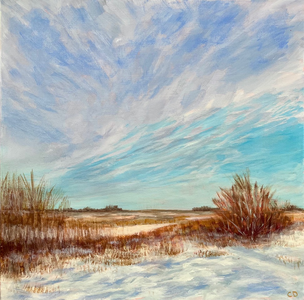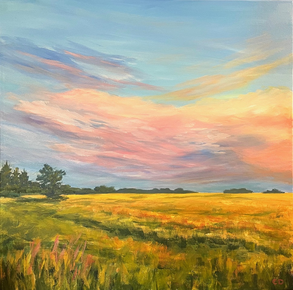 In my artwork my goal is to depict the prairie landscape with light and colour. I am so fortunate to live in a place where we experience four seasons, spacious skies filled with changing shapes, colours and moods, lands populated with crops, lakes, sloughs, forests, valleys, and long dirt roads that seemingly go on forever. I paint these images to bring joy, feelings of belonging, and to encourage people to appreciate the freedom and beauty around us.