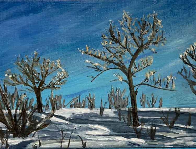 I grew up artistically at Kenderdine Campus and still miss it. I have struggled to find a satisfying way to keep busy artistically through the winter months. Sometimes printmaking intrigues me. Recently I have been delving into abstraction and learning a lot about myself. The focus for abstraction comes from within, a very different experience from En Plein Air.