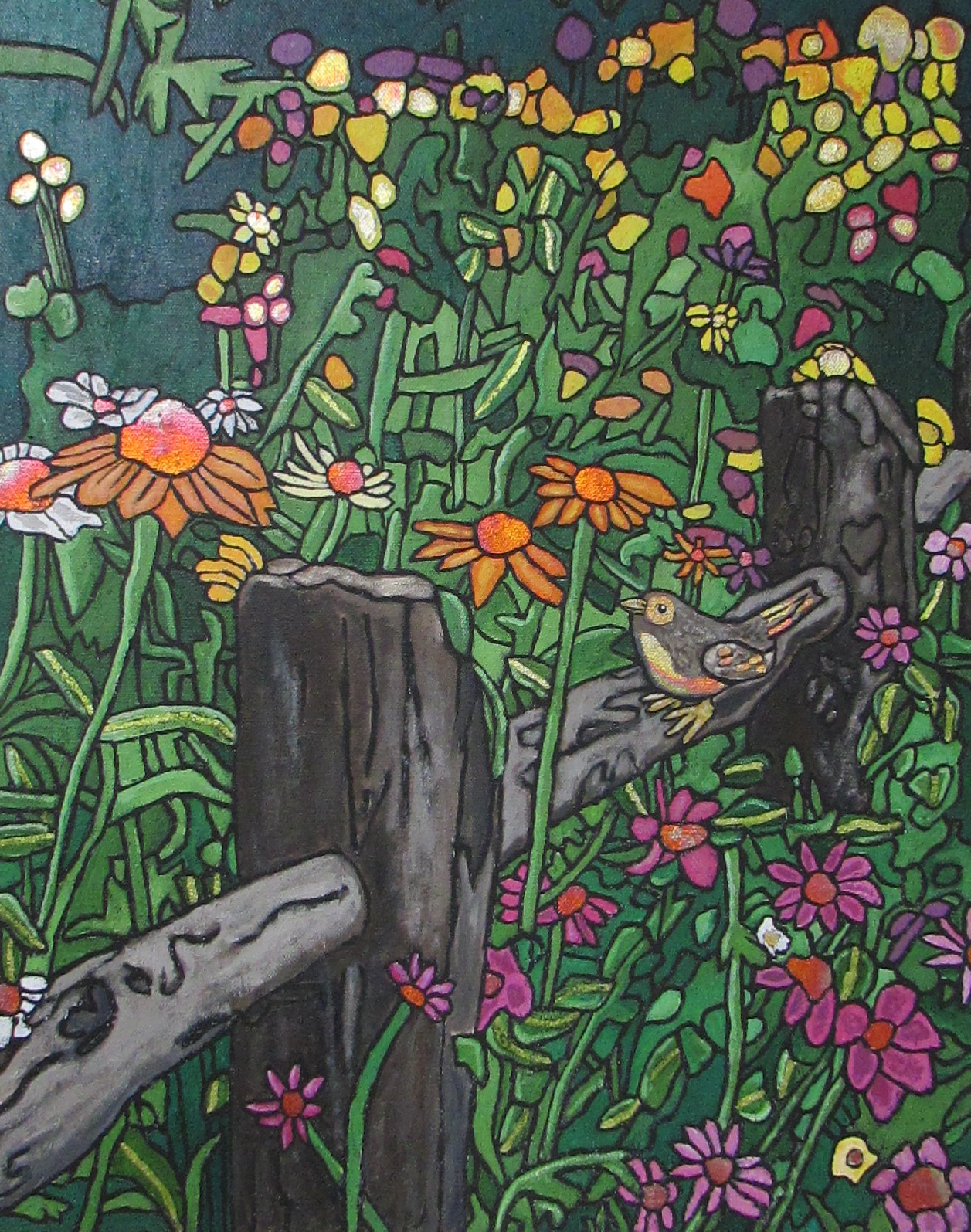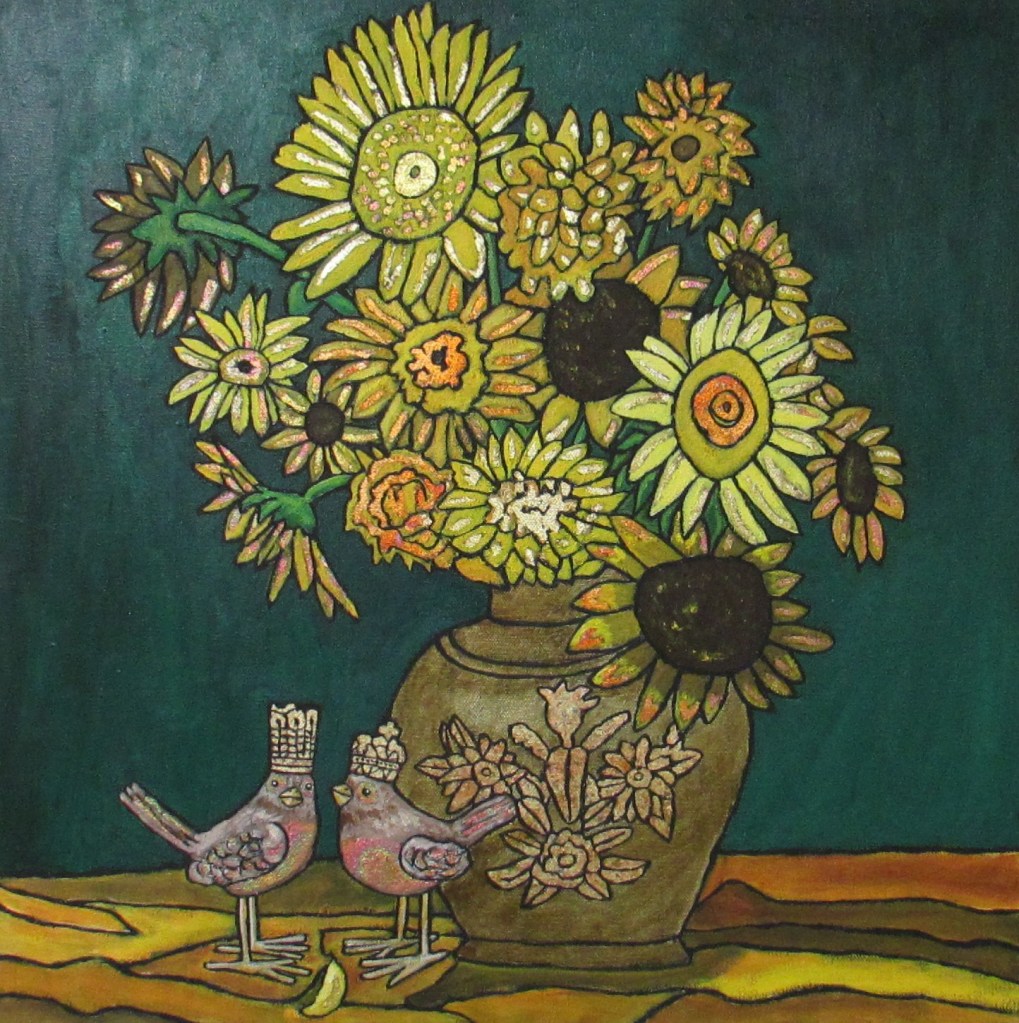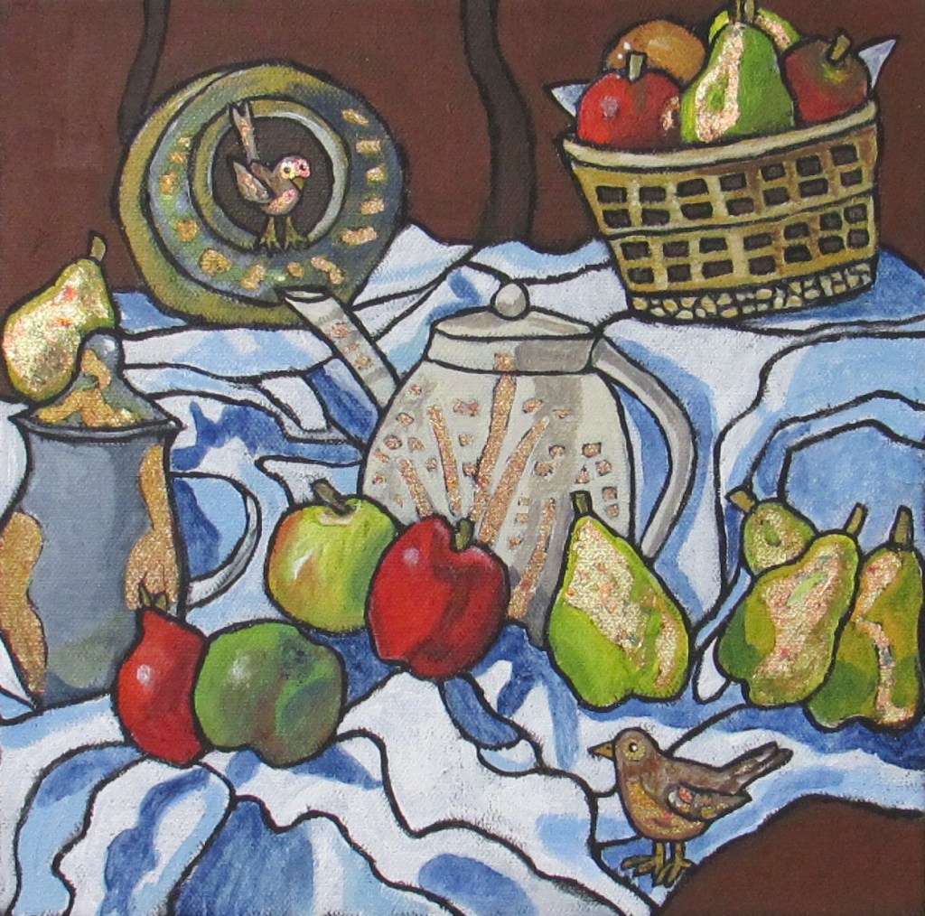 I mainly focus on birds because I feel they provide some additional interest, personality or humor in my paintings. I enjoy the process of layering in each painting and planning the drawing, mediums, gilding and colour. I am always surprised at the end when the painting reveals itself, which is the biggest payoff and reward.